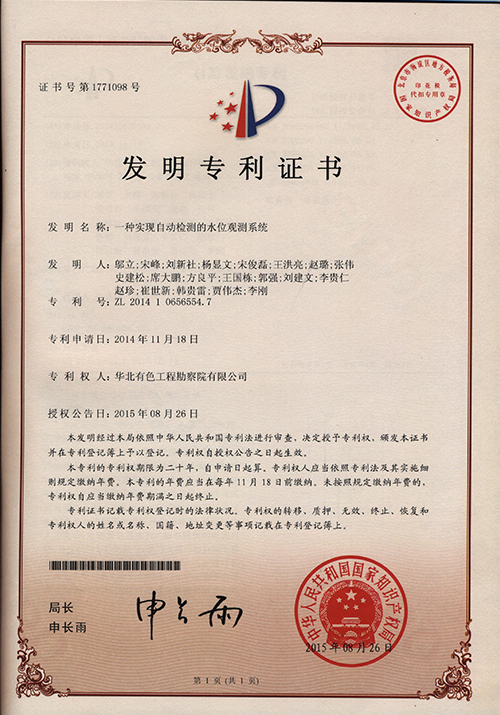 本發(fā)明涉及一種水位觀測系統(tǒng),其包括電源、機(jī)械部件、控制部件以及數(shù)據(jù)采集部件。本發(fā)明的水位觀測系統(tǒng)運(yùn)用水體浮力原理設(shè)計(jì)制作,利用浮標(biāo)重力及其所受浮力平衡點(diǎn)確定水面位置,浮標(biāo)可隨水位變化而靈敏的、準(zhǔn)確的移動(dòng);水位觀測系統(tǒng)實(shí)時(shí)的采集記錄浮標(biāo)移動(dòng)信息,從而完成水位觀測工作。本發(fā)明的水位觀測系統(tǒng)可以通過控制電路及電磁離合器實(shí)現(xiàn)自動(dòng)控制,從而減少人力支出,電磁離合器由PLC輸出短暫的電流啟動(dòng),并控制剎車輪的回位,從而實(shí)現(xiàn)浮標(biāo)自動(dòng)下移及平衡;通過電機(jī)帶動(dòng)集線輪轉(zhuǎn)動(dòng),從而使浮標(biāo)上移至其受平衡力時(shí)自動(dòng)停止。由于電磁離合器只是短暫的啟動(dòng),因此可以減少能耗并防止電路過熱燒損。