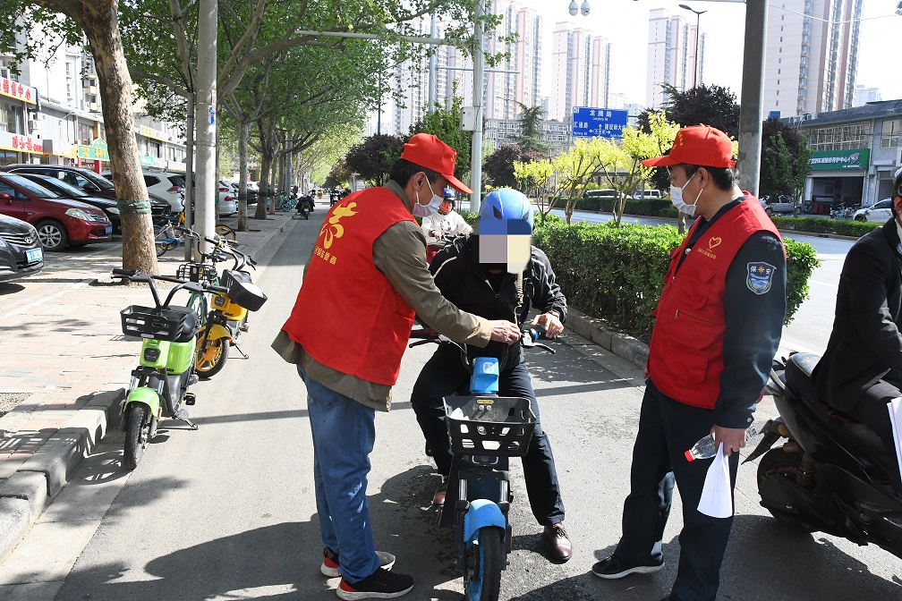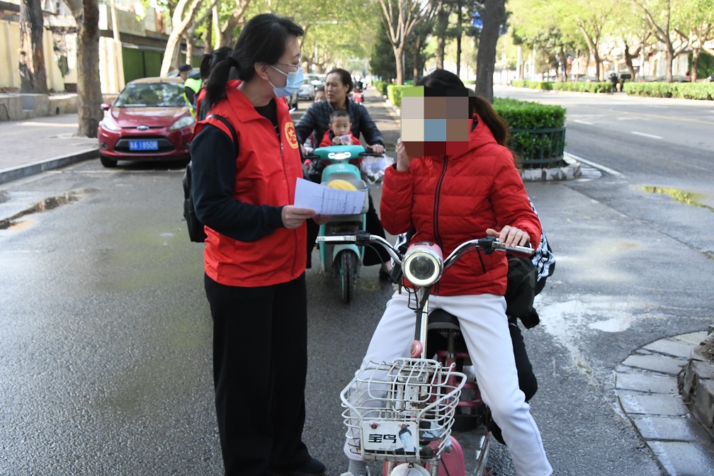活動期間,志愿者身著紅色志愿服,根據(jù)分工安排,在兩個小區(qū)門口協(xié)助門衛(wèi)不厭其煩地對未戴安全頭盔的行人進行勸導:出行時要正確佩戴安全頭盔,告知其各類違法行為的危害及后果,督促其立即改正;對尚未登記上牌的電動自行車車主進行提醒:到公安交管部門設置的登記上牌網(wǎng)點辦理登記備案業(yè)務。他們以高度的社會責任感和昂揚的精神面貌展現(xiàn)出了我隊的良好形象,詮釋了志愿服務的精神,也為城市增添了一道靚麗的風景線。
