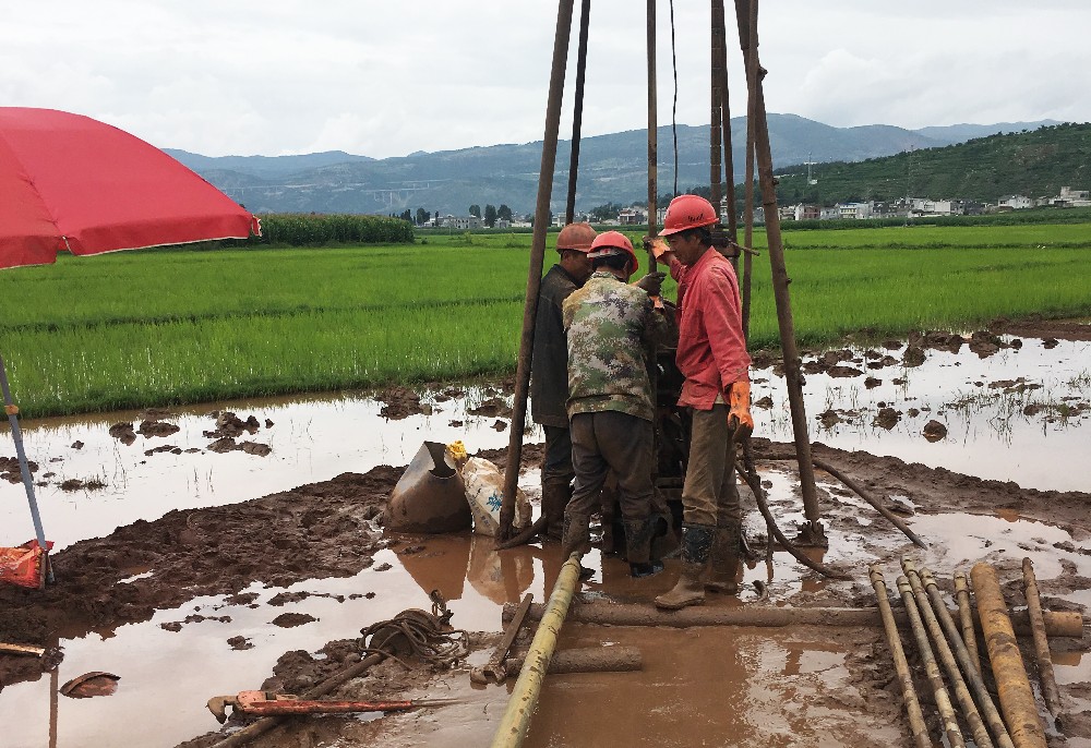 6月中下旬云南地區(qū)進(jìn)入了雨季, 從6月15日開(kāi)始工地幾乎天天都會(huì)下雨,對(duì)鉆探施工造成了很大影響,尤其是大大增加了在水田里施工鉆孔的難度。為了確保工程進(jìn)度,項(xiàng)目部和機(jī)臺(tái)人員積極開(kāi)動(dòng)腦筋,千方百計(jì)地想辦法改善施工條件,大大加快了施工速度。由于項(xiàng)目部工作有力,得到了甲方的認(rèn)可,地質(zhì)組又為施工人員增加了工作量。目前,項(xiàng)目部正組織施工力量有條不紊地開(kāi)展新的工作。