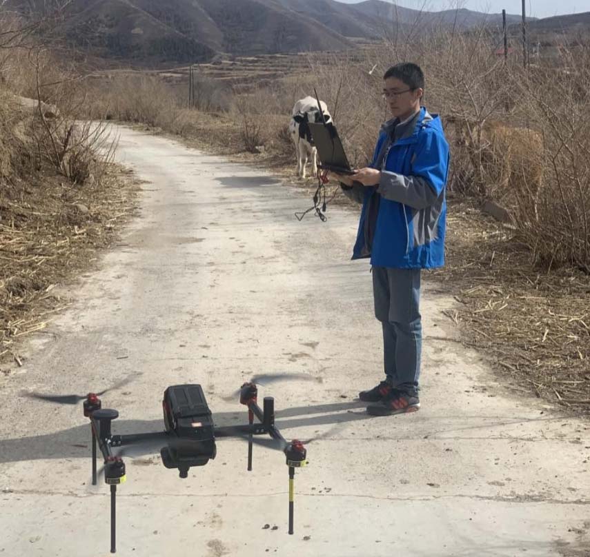 該項目工期緊,任務(wù)重,原計劃派遣6名技術(shù)人員,分三個航測作業(yè)組于半個月內(nèi)完成外業(yè)數(shù)據(jù)采集,但受當(dāng)?shù)匾咔榉揽赜绊?,只能協(xié)調(diào)2名技術(shù)人員一個航測組入場。項目組進(jìn)場后嚴(yán)格做好疫情防控措施,迅速作業(yè),測區(qū)內(nèi)地勢高差起伏大,通往山頂?shù)牡缆穾缀鯖]有,每天只能步行到山頂布設(shè)控制點,攜帶面包、礦泉水等食物進(jìn)行充饑,同時還要克服惡劣天氣影響,一干就是一整天,晚上返回營地繼續(xù)整理數(shù)據(jù),作業(yè)過程十分艱苦。張家口3-4月的大風(fēng)天氣,導(dǎo)致無人機每天可作業(yè)時間嚴(yán)重受限,項目組合理規(guī)劃作業(yè)流程,上午天氣晴朗時進(jìn)行航測,下午風(fēng)力變大后進(jìn)行控制點布設(shè),數(shù)據(jù)接收后第一時間傳給單位內(nèi)業(yè)組,做到了內(nèi)外業(yè)工作無縫銜接。