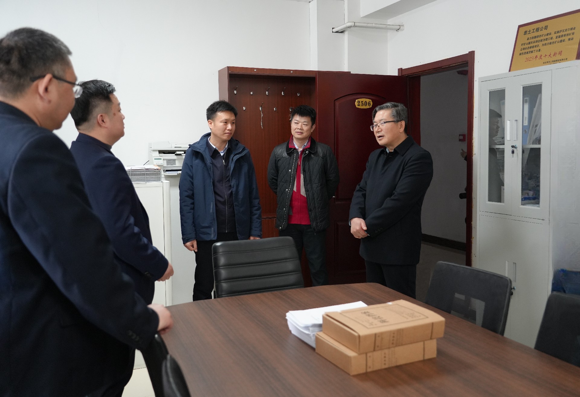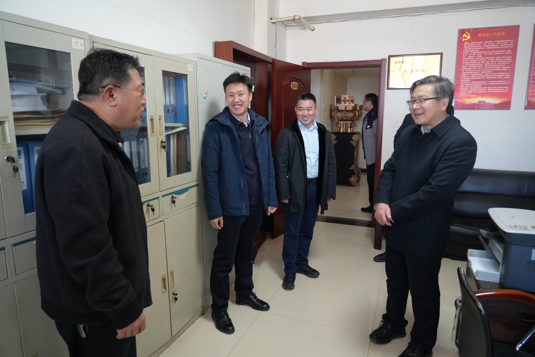 趙維明一行實地調(diào)研創(chuàng)新中心五大研發(fā)所,查看監(jiān)測預警平臺,聽取金屬礦山水工環(huán)自動化監(jiān)測預警平臺成果匯報,并深入機關各部門和相關單位看望慰問干部職工。