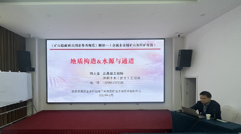 近日,受礦冶科技集團(tuán)有限公司安全培訓(xùn)中心邀請(qǐng),隊(duì)黨委委員、副隊(duì)長(zhǎng)劉大金在“礦山隱蔽致災(zāi)因素普查規(guī)范解讀——金屬非金屬礦山及尾礦庫(kù)篇”高級(jí)研修班進(jìn)行《地質(zhì)構(gòu)造&水源與通道》專(zhuān)題授課。